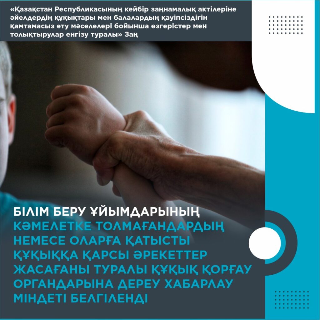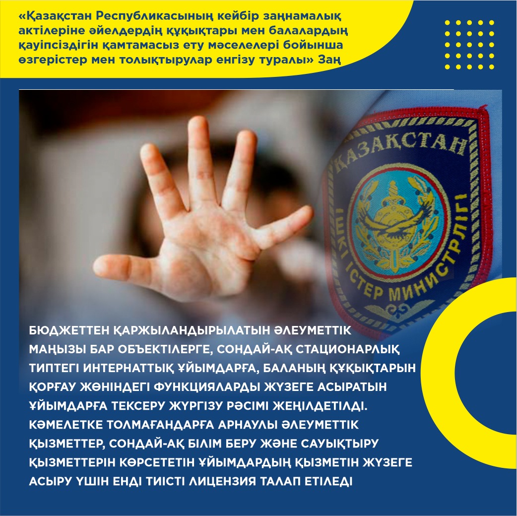 Президент Қасым-Жомарт Тоқаев «Қазақстан Республикасының кейбір заңнамалық актілеріне әйелдердің құқықтары мен балалардың қауіпсіздігін қамтамасыз ету мәселелері бойынша өзгертулер мен толықтырулар енгізу туралы» және «Қазақстан Республикасы Әкімшілік құқық бұзушылық туралы кодексіне әйелдердің құқықтары мен балалардың қауіпсіздігін қамтамасыз ету мәселелері бойынша өзгерістер мен толықтырулар енгізу туралы» Қазақстан Республикасының заңдарына қол қойды.